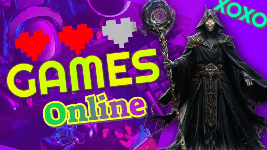 - The “Games Online” text is displayed in bold, playful gaming fonts. Large, blocky letters make the text clear and easy to read, even on small mobile screens.